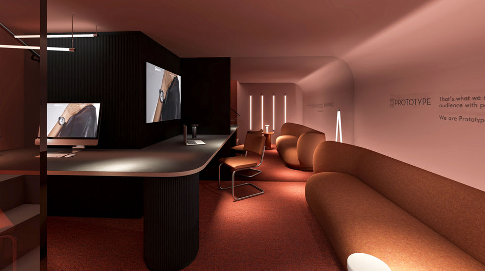 Situé au R-1, l’espace post-production de Prototype Studio a été conçu pour une immersion totale, tant dans la décoration que dans la projection des films pour les clients.